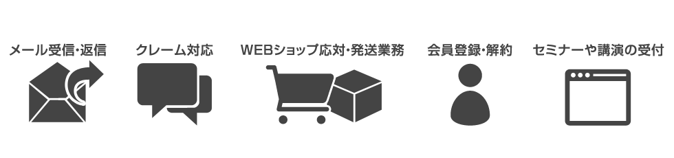 受信・返信からクレーム対応や会員登録・解約、セミナーの受付までお引き受け致します。